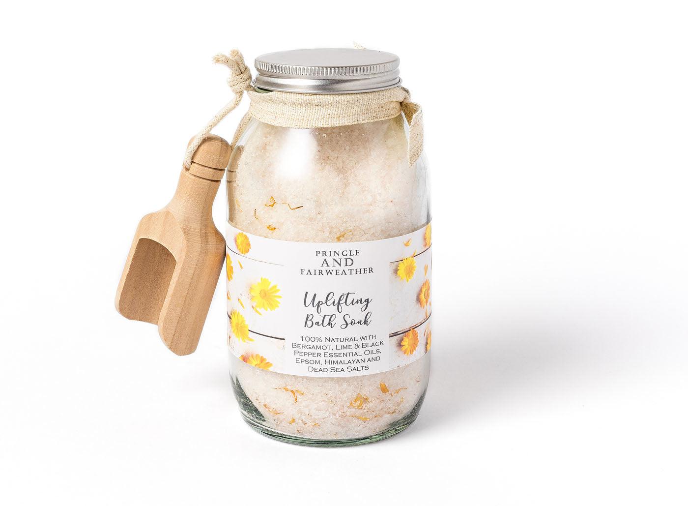 Magnesium Carbonate (Dead Sea Salt), Magnesium Sulphate (Epsom Salt), Sodium Chloride (Himalayan Pink Salt), Dried Marigold Petals, Litsea Cubeba (May Change Essential Oil), Cedrus Atlantica (Cedarwood e/o), Citrus Aurantifolia (Lime e/o), Phenyoxethanol (Naturally ocurring preservative), Citrus Bergamia (Bergamot e/o), Piper Negrum (Black Pepper), [Naturally Ocurring Citral, Limonene, Linalool (From Essential Oils)]
