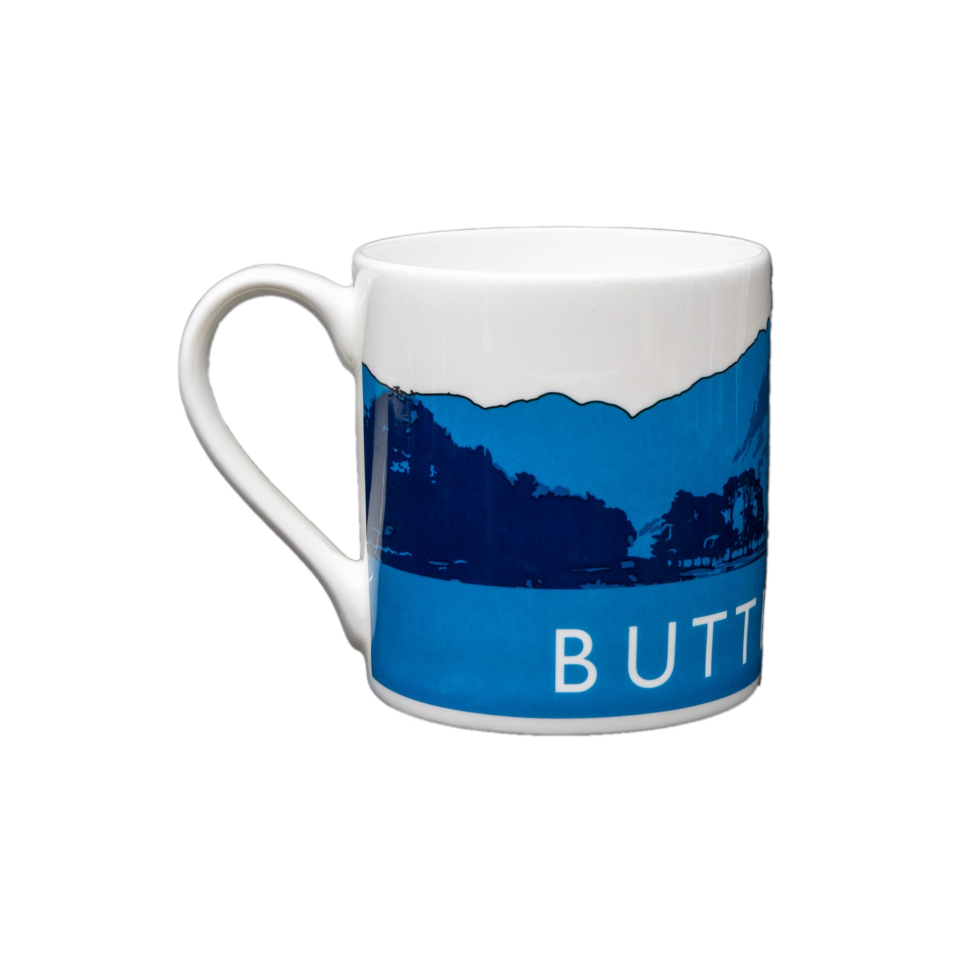 Designed by Love the Lakes, these bone china mugs are an update from the original and much-loved skyline collection and are a multi-shade blue on white