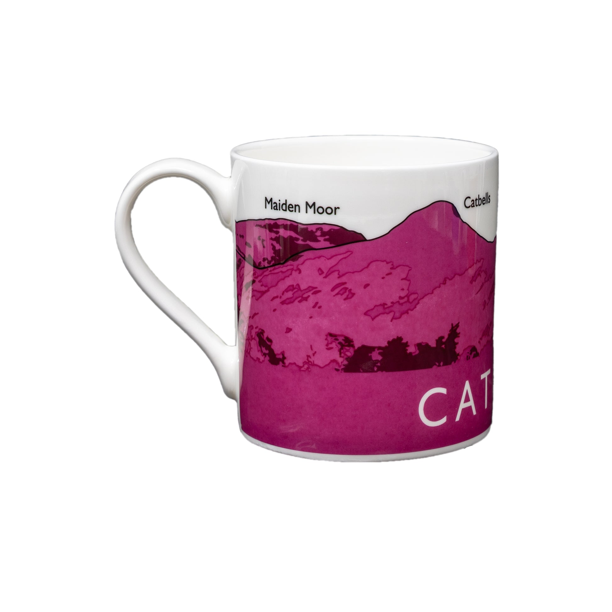 Designed by Love the Lakes, these bone china mugs are an update from the original and much-loved skyline collection and are a multi-shade deep pink on white