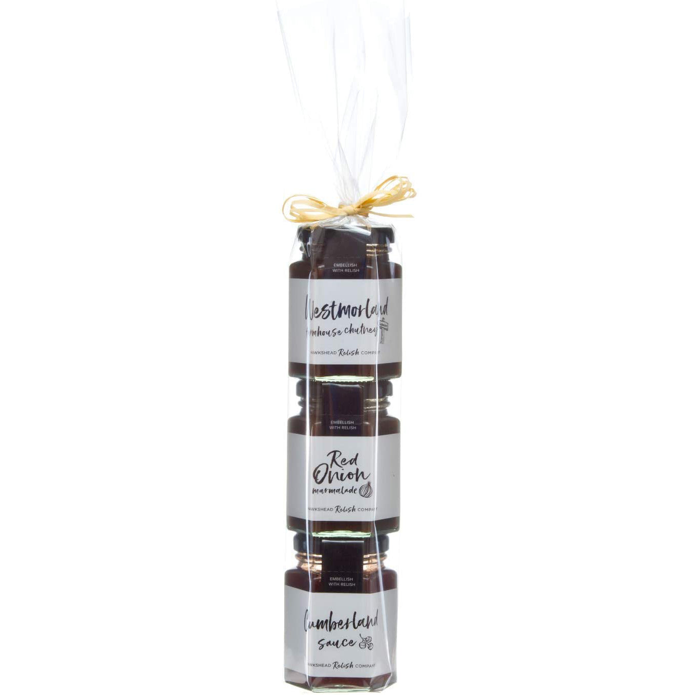 The perfect pick up gift... A lovely gift wrapped selection containing 3 savoury La'al* jars, hand wrapped in cellophane & finished with a raffia bow detail.
