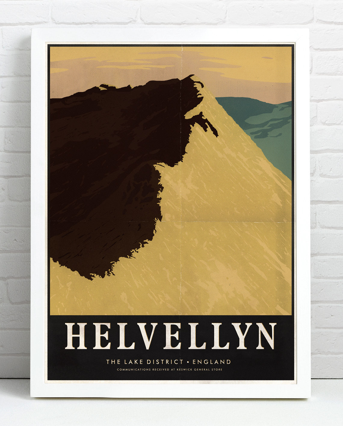 Printed in Cumbria, Helvellyn records the mountaineering landmark Striding Edge, which was traditionally used to mark the border between the old counties of Cumberland and Westmorland (prior to the formation of Cumbria as a county). The name ‘Helvellyn’ derives from the old Cumbric ‘Halvelyn’: ‘hal’ [moor] and ‘velyn’ [yellow].