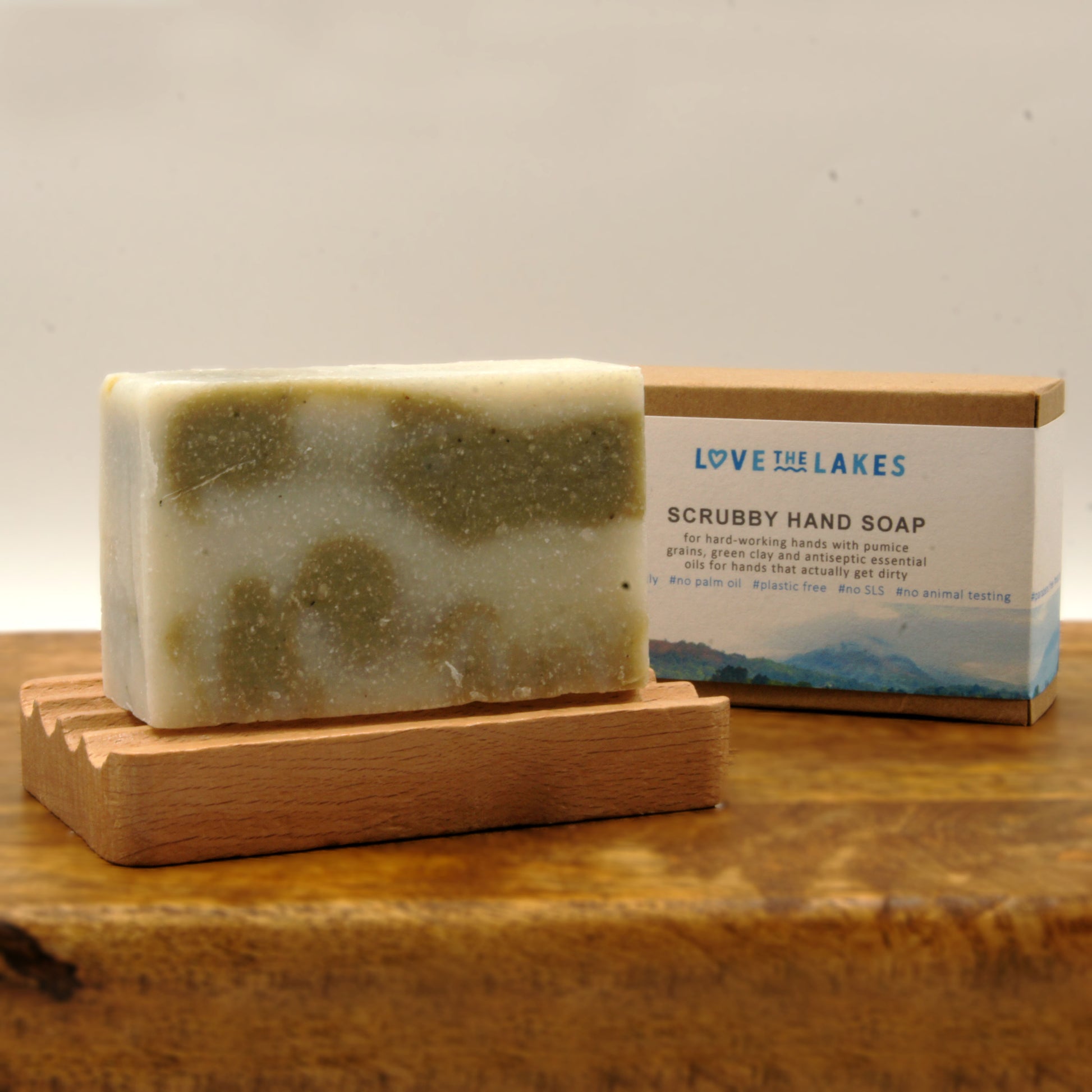 This soap is made with pumice grains, green clay and antiseptic essential oils for hands that work hard and get dirty!