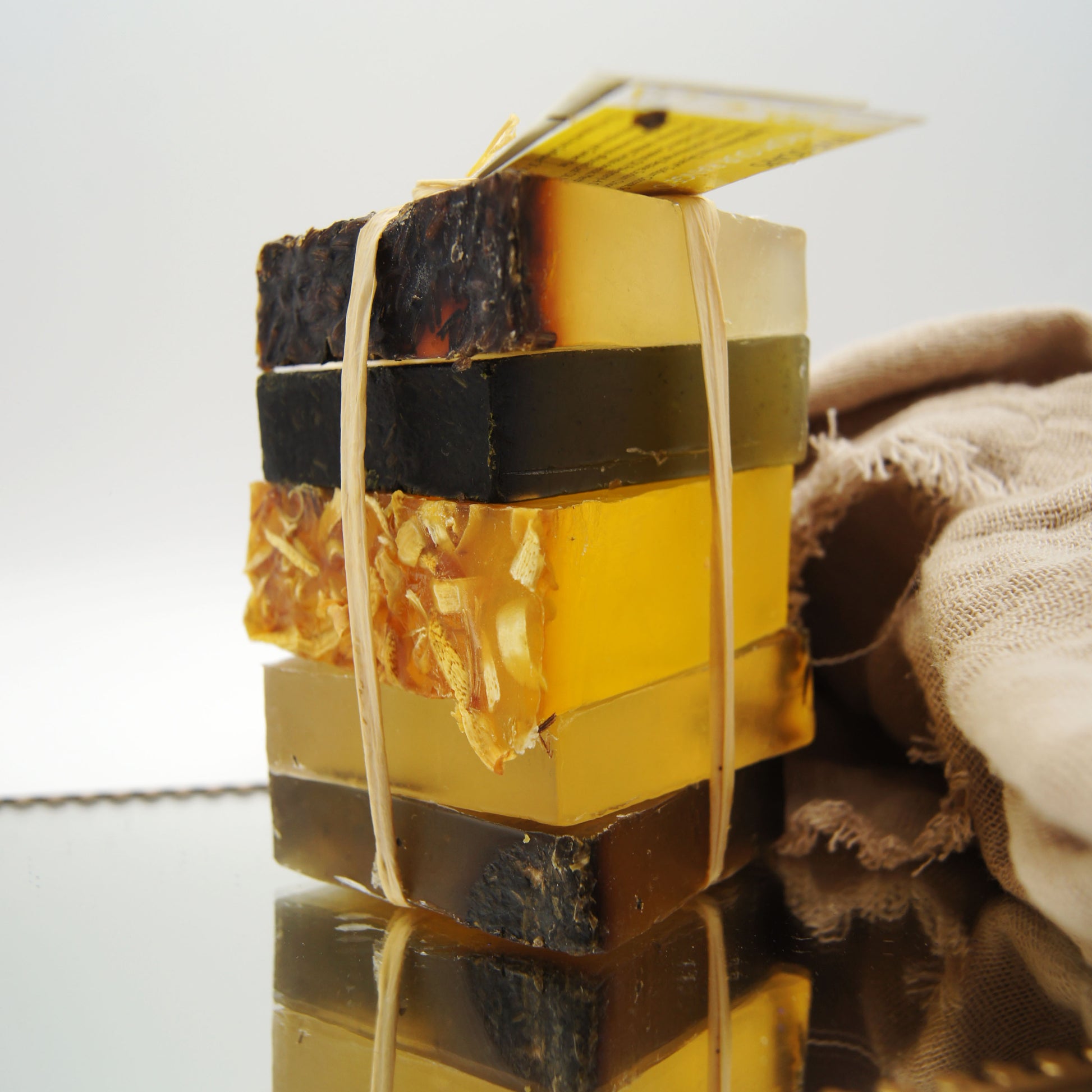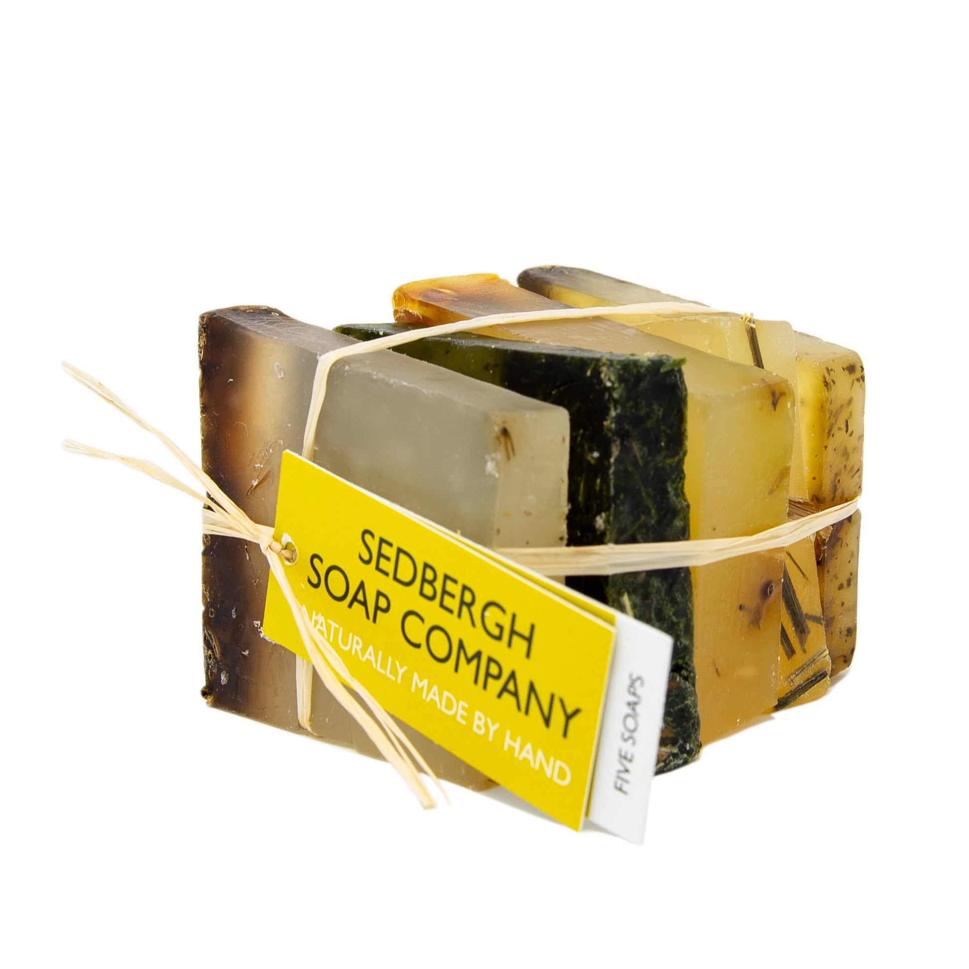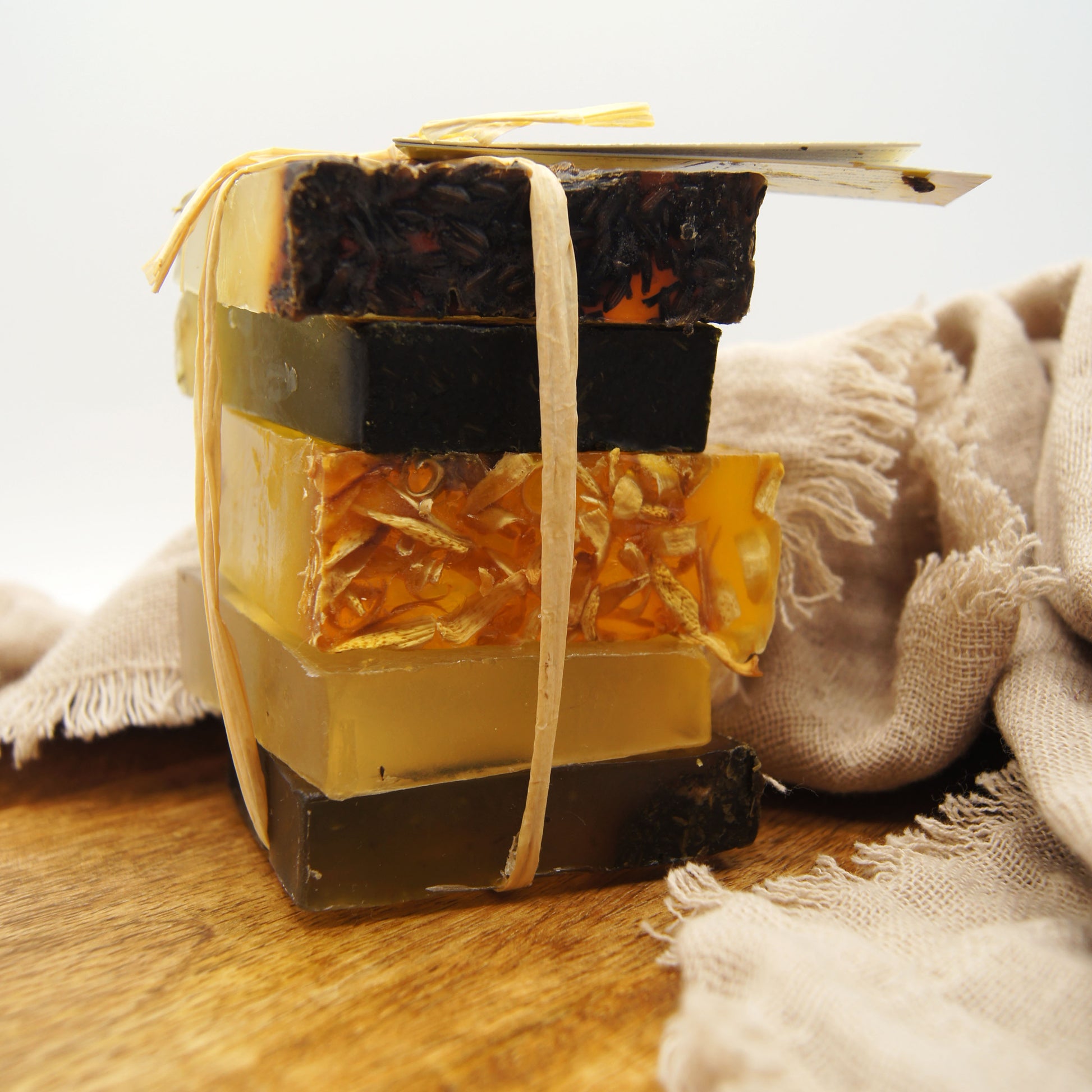 This stack of 5 mini soaps make a beautiful gift, and are also favoured by many local guest houses! It is typically made up of lemongrass, lavender, rosemary and nettle, sweet orange plus peppermint or geranium but some variation is possible.